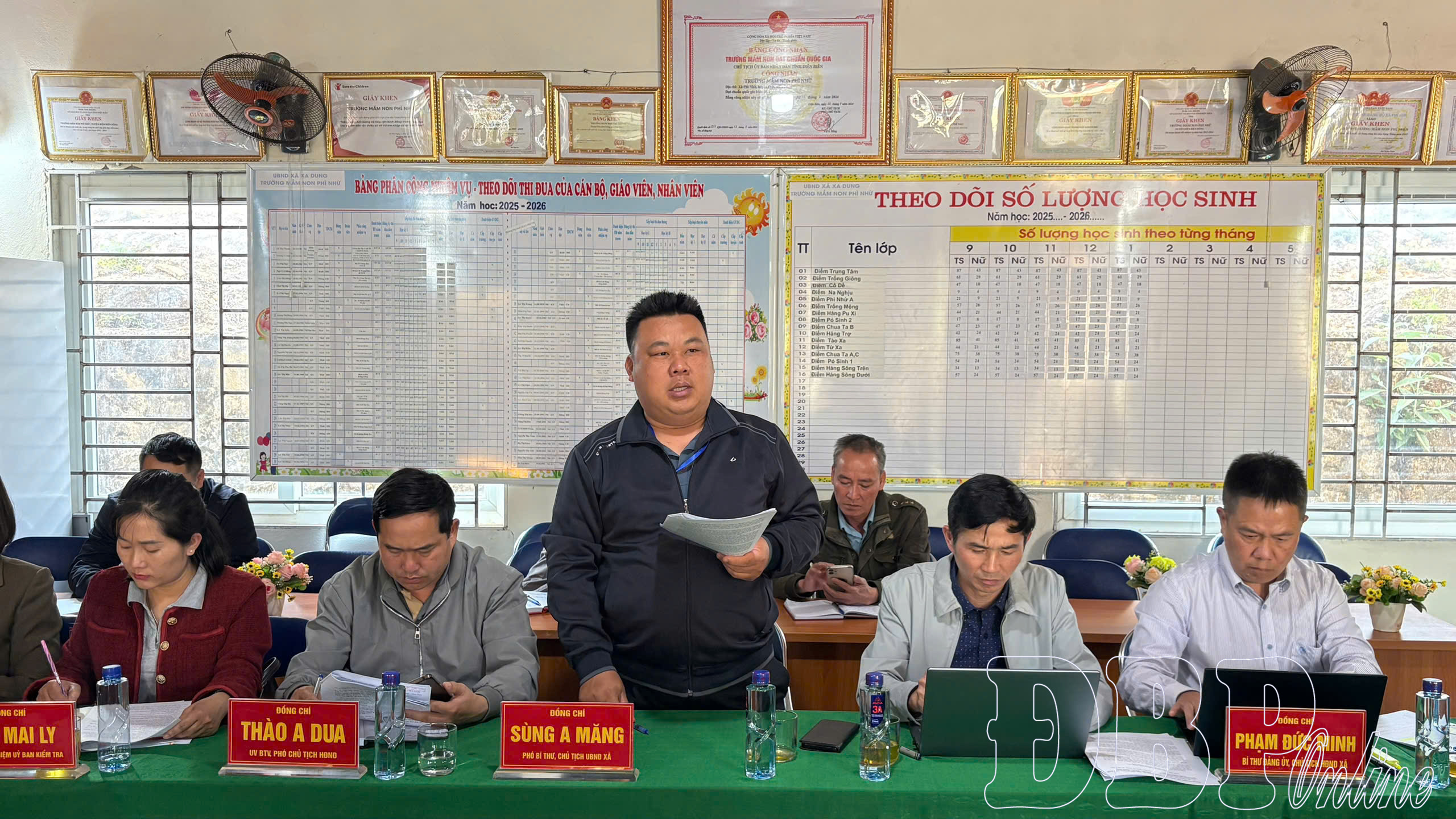 Trưởng ban Tuyên giáo và Dân vận Tỉnh ủy Vừ A Bằng phát biểu tại buổi kiểm tra.Việc lựa chọn, giới thiệu người ứng cử đại biểu HĐND xã được thực hiện nghiêm túc, đúng quy trình, bảo đảm tiêu chuẩn, điều kiện, cơ cấu, thành phần theo quy định của pháp luật và các hướng dẫn của Trung ương, của tỉnh. Xã đã giới thiệu 42 người ứng cử đại biểu HĐND xã để bầu ra 21 đại biểu. Hội nghị hiệp thương lần thứ nhất được tổ chức đúng thời gian, đúng thẩm quyền, thể hiện rõ vai trò chủ trì, phối hợp của Ủy ban MTTQ Việt Nam xã, góp phần tạo sự đồng thuận ngay từ đầu trong công tác nhân sự; công tác tuyên truyền được triển khai sớm và có trọng tâm, giúp cán bộ, đảng viên và Nhân dân hiểu rõ ý nghĩa, tầm quan trọng của cuộc bầu cử, cũng như quyền và nghĩa vụ của cử tri...