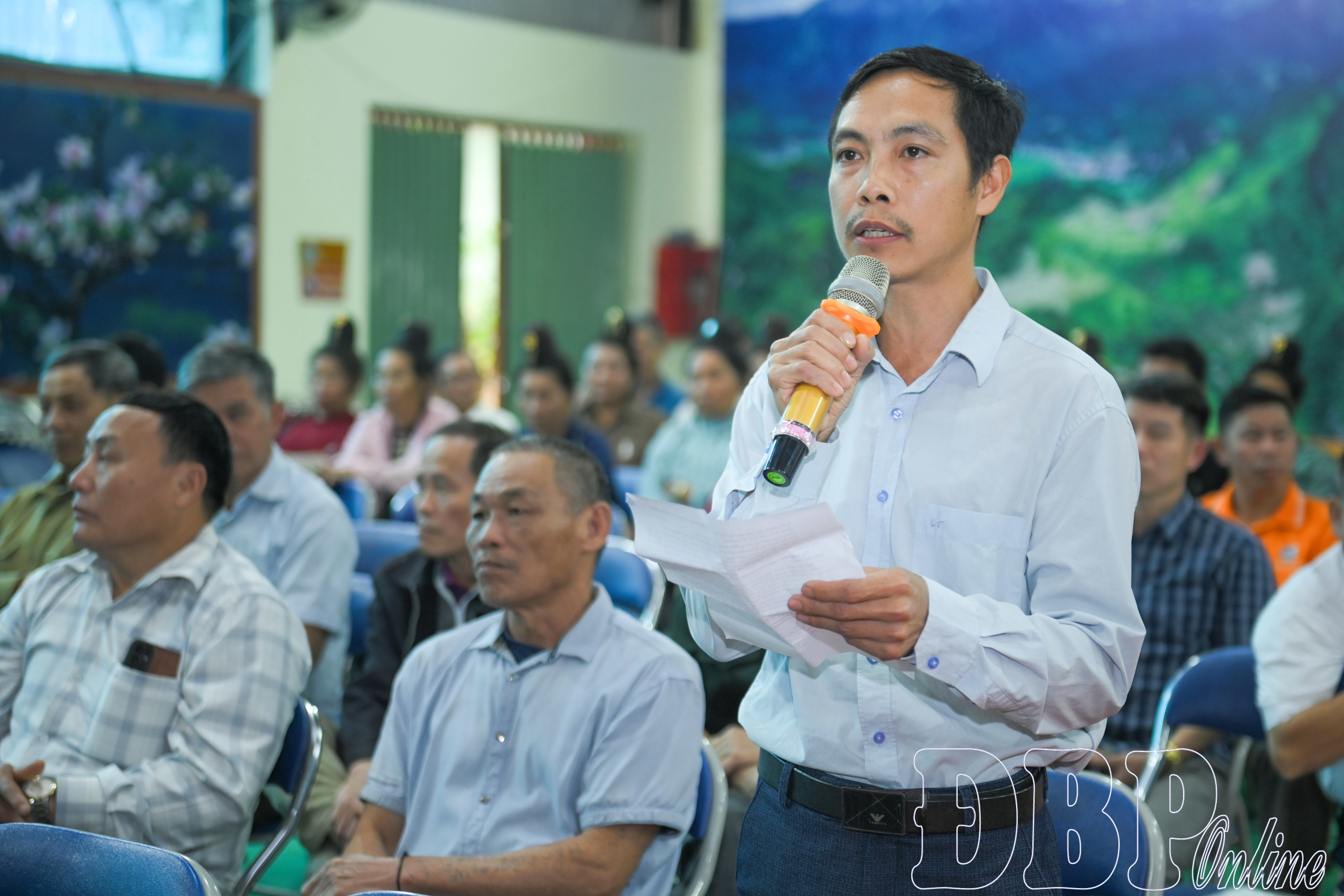 Cử tri xã Búng Lao đề nghị quan tâm đầu tư di tích lịch sử hang Thẳm Púa để thúc đẩy phát triển du lịch; mở rộng đối tượng thụ hưởng nguồn vốn các công trình mục tiêu quốc gia; có chính sách đặc thù cho những hộ dân có đất đăng ký trồng cà phê, cây mắc ca, cây ăn quả trên địa bàn xã; xem xét chuyển đổi các diện tích đất khó canh tác…Các ý kiến, kiến nghị của cử tri đã được Chủ tịch UBND tỉnh Lê Văn Lương - đại diện các ứng cử viên, giải đáp, ghi nhận, tổng hợp để chuyển tới cơ quan có thẩm quyền xem xét, giải quyết.
